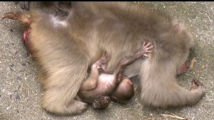11日前に生まれたばかり。体長約30センチほどのニホンザルの赤ちゃんです。今は、お母さんの「もも」にぴったりくっついているため、まだ園長も性別を確認出来ていないといいます。
