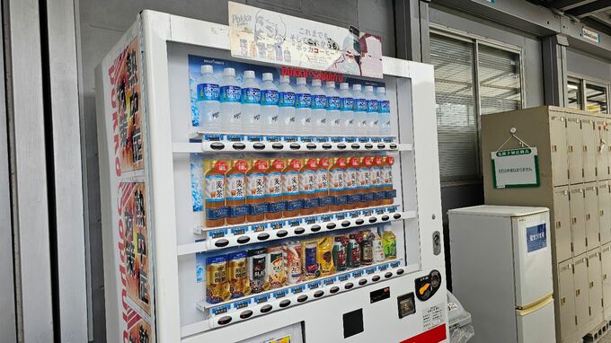 オール100円の自販機は、熱中症対策としてスポーツドリンクが多めに設定。