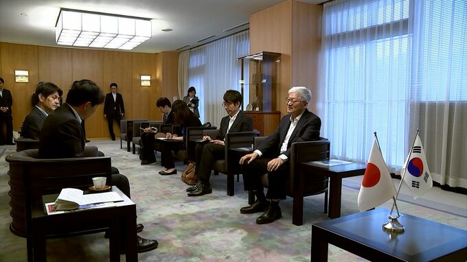 駐日韓国大使が岡山県の伊原木知事を表敬訪問し、新型コロナが落ち着くなか、学生らによる国際交流の復活を要望しました。