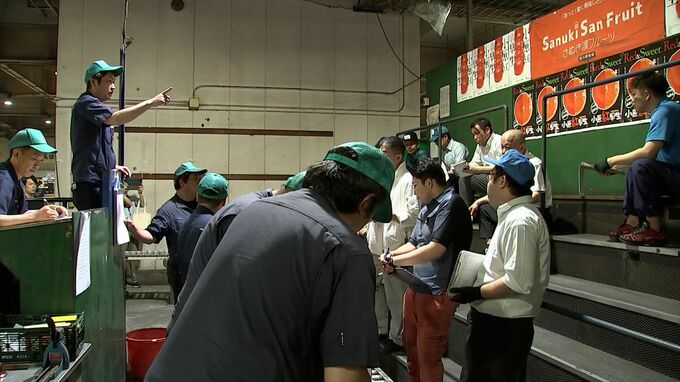 高松市中央卸売市場には、この日に合わせて収獲された約690キロが、初セリにかけられました。去年(2023年)の最高額は、1箱30万円でしたが、今年は、それを上回る1箱40万円で競り落とされました。