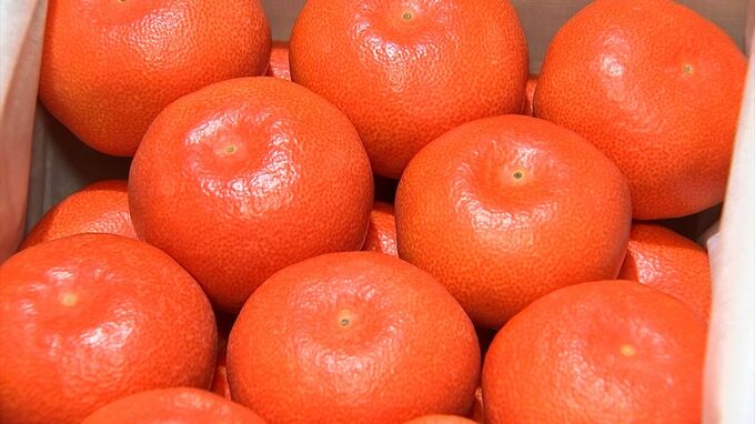 紅色が濃く、濃厚な甘みが特徴の「小原紅早生」。ハウス栽培の生産者は県内に4人しかいないという貴重なみかんです。
