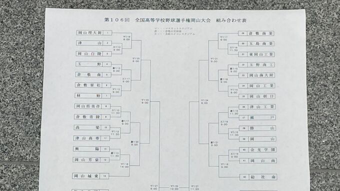 夏の甲子園への出場をかけた、第106回全国高校野球岡山大会が来月(7月)開幕します。きょう(22日)組み合わせ抽選会が、岡山市東区の環太平洋大学で行われ、対戦相手が決まりました。