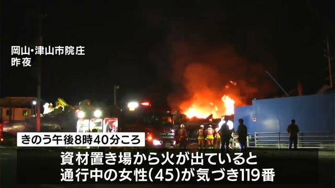 昨夜(23日)、津山市の資材置き場で火事がありホイールなど金属の廃材が燃えました。けが人はありませんでした。