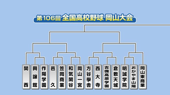 【画像⑥】春の県大会ベスト4の関西は、作陽学園と興譲館の勝者とぶつかります。また、昨年の優勝校・おかやま山陽は1回戦で明誠学院と戦い、勝者は岡山東商業と対戦します。