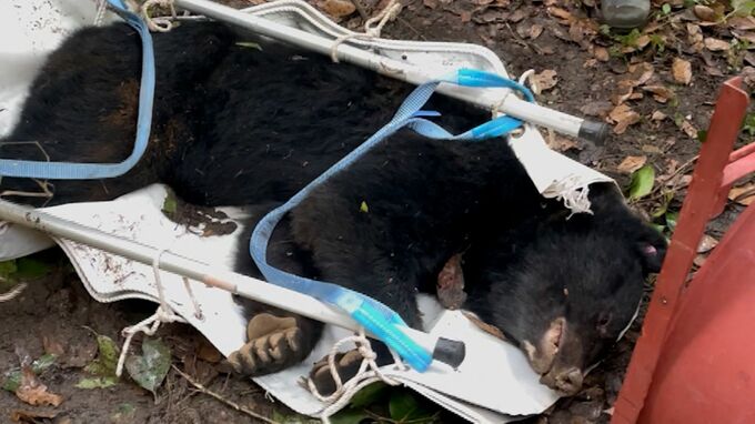 クマは、通報で駆け付けた警察や市の職員などにより麻酔銃で眠らされ(【画像⑤】)、遠くの山に放たれたといいます。