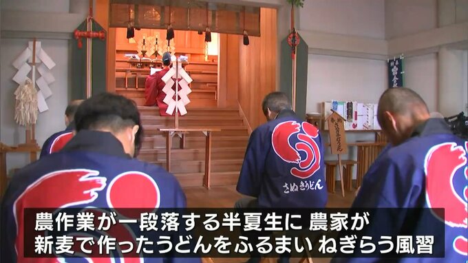 香川県オリジナルの小麦「さぬきの夢」が今年も収穫できたことに感謝し、うどん文化の発展を祈願しました。