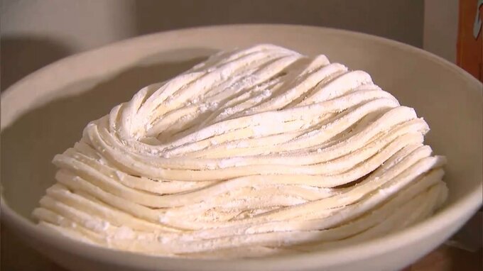 うちたての麺が、神前に供えられました。献麺式は、本場さぬきうどん協同組合が1980年から行っています。