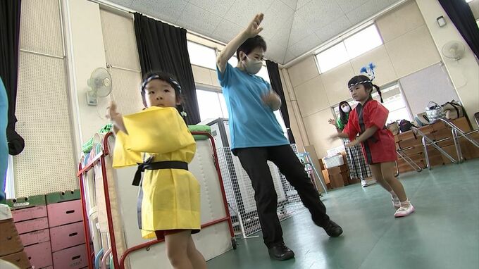 「備中たかはし松山踊り」を体験したのは高梁幼稚園の園児、約30人です。子どもたちに伝統芸能を体験してもらい、故郷への愛着を持ってもってもらおうと企画されました。