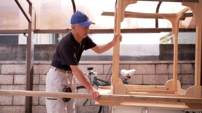 「これが真備船穂の山車、完成したばっかし。私が作ったんですけど」