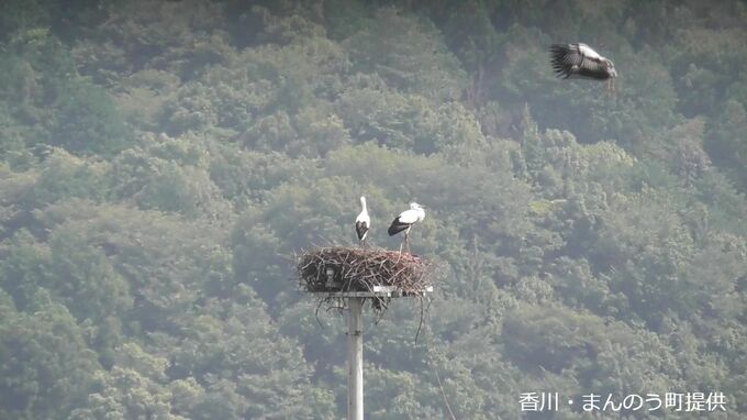 今年4月、香川県まんのう町で誕生したコウノトリのヒナ3羽が巣立ちました。ふ化から2か月あまり。親鳥と見分けがつかないほど大きく成長しました。