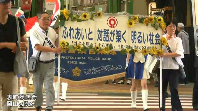 「青少年の犯罪や非行の防止」「犯罪者の更正」を 社会を明るくする運動 街頭パレード【岡山】 2024年7月7日(日) 18:00 岡山 犯罪や非行のない社会を築くことを目指す、「社会を明るくする運動」の街頭パレードが、岡山市北区で行われました。強化月間にあたる7月に毎年行っているもので、犯罪や非行をした人を支える保護司ら、約230人が参…