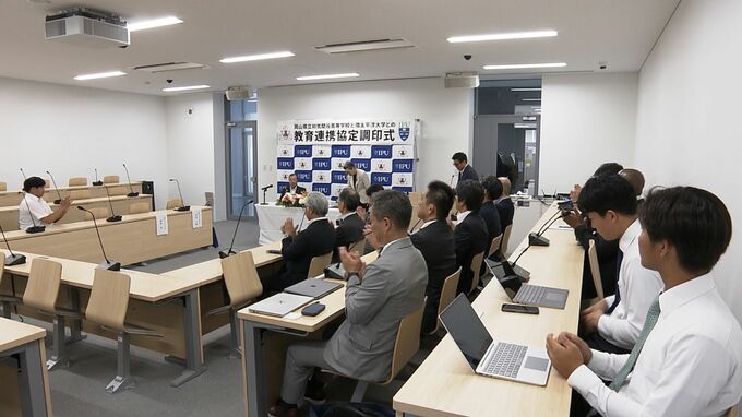 協定を結んだのは、和気町の和気閑谷高校とIPU・環太平洋大学です。両校ではこれまで大学生と高校生を交えた授業などを行っていて今回、高校と大学の連携をより推し進めようと協定が結ばれました。