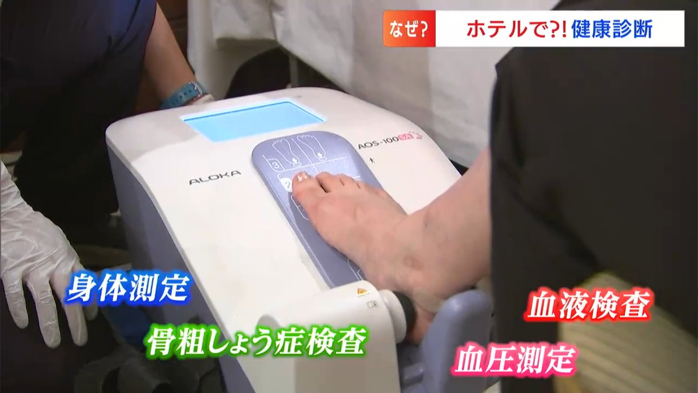 ホテル内では、身体計測・血圧測定・血液検査、さらには骨粗しょう症の検査が無料で行われていました。