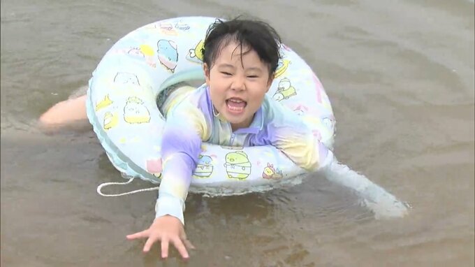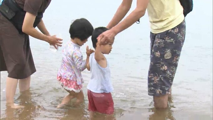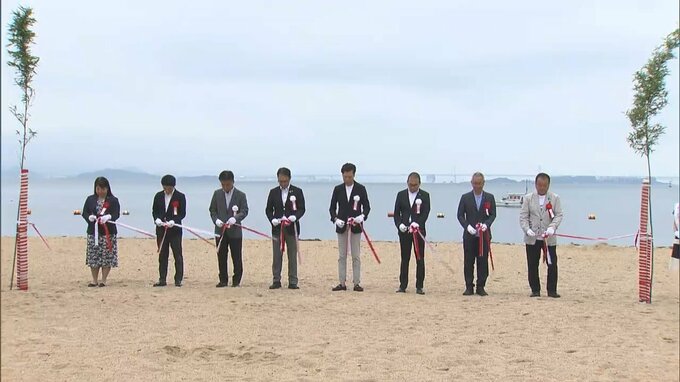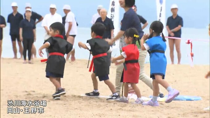 岡山県玉野市の渋川海水浴場で海開きの神事が行われ、さっそく子どもたちが初泳ぎを楽しみました。