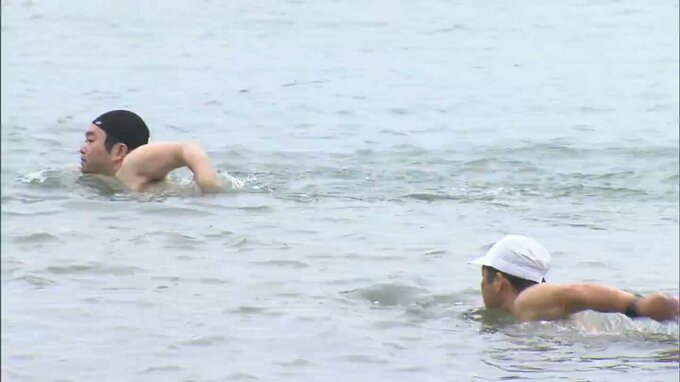 続いて地元の子どもたちがさっそく海に入り今年初めての海水浴を楽しんでいました。
