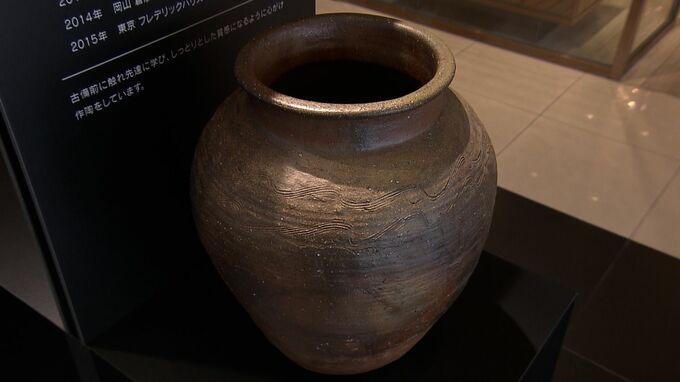 岡山市南区の車のショールームで若手の備前焼作家の作品を集めた展覧会がきょう(15日)から始まりました。