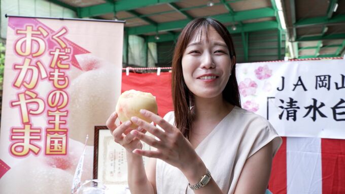 「岡山の桃は全国的に珍しく白い桃ですので、見た目と、清水白桃は特に柔らかくて香りの高い品種ですので、岡山の桃だと楽しんで味わっていただけたら」