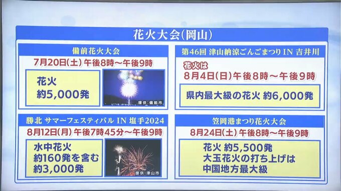 ーここからは今後行われる各地の花火大会をピックアップして紹介します。まずは、岡山の花火大会です。