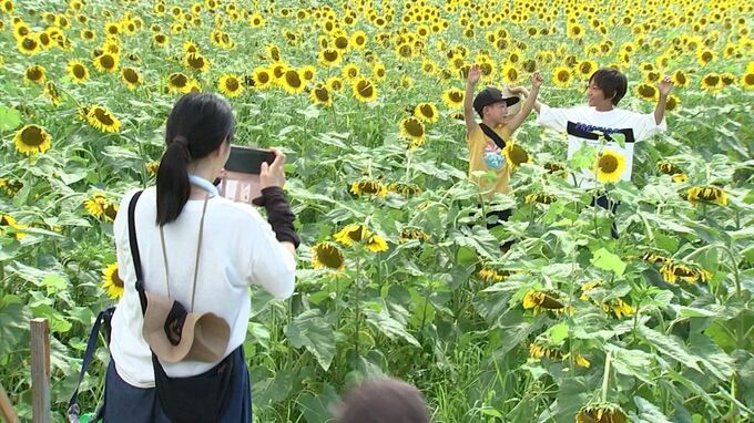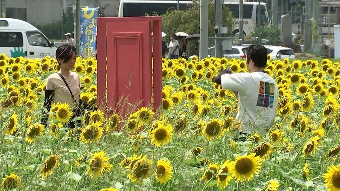約10万本のひまわりが一面に咲き誇ります。まんのう町の帆山地区のひまわり畑が今年も見ごろを迎えました。四国地方の梅雨明けの発表を聞いてか、多くの人が訪れ、夏本番の風景を楽しんでいました。