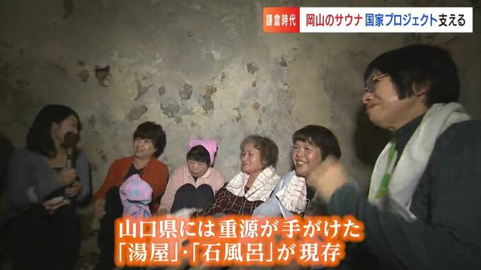 当時の湯屋は、水を沸騰させて発生した蒸気で体を温める現代でいう「スチームサウナ」でした。重源が岡山の地で作ったのは、そのスチームサウナだったと考えられています。重源が東大寺再建のために木材を調達した山口県では、重源が手がけた「湯屋」と「石風呂」が残っていて、今も入浴体験ができます。