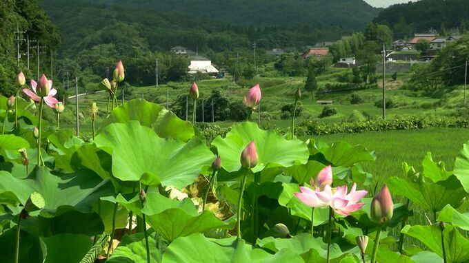「夏によく似合う花だと思います。このハスと里山の風景がいいなと思って…」「ゆったりとして落ち着くんです。ここで(写真を)撮っていたら」