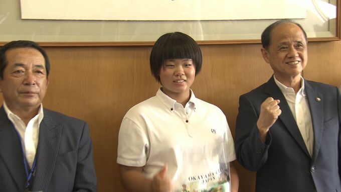 今月徳島県で行われたインターハイの女子砲丸投で、岡山商大附属高校の奥山琴未選手が優勝を果たし、岡山市長に優勝を報告しました。