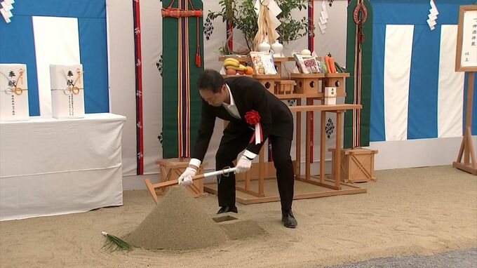 大きな丸い屋根は、この秋完成する県立アリーナ。その隣に建設される、外資系ホテルです。地鎮祭には関係者約70人が出席し、工事の安全を祈りました。