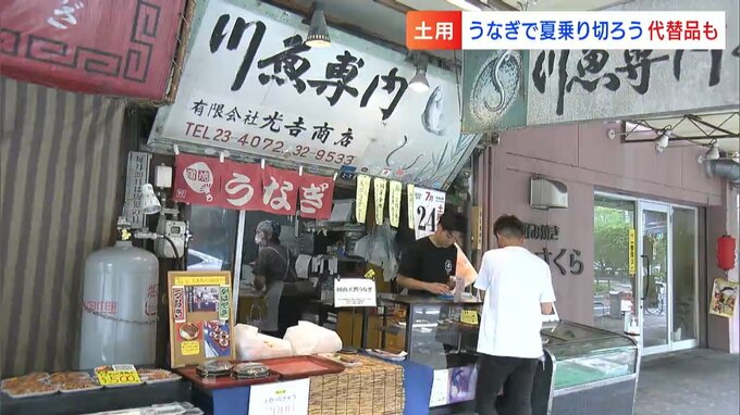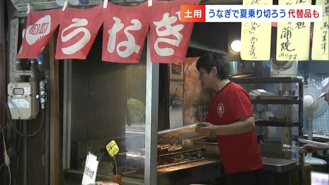 丑の日で欠かせないものの一つが「うなぎ」です。岡山市内の専門店やデパートなどでは朝から多くの人が買い求めていました。物価高の影響で価格もうなぎ昇りとなった今年、それに変わる代替品も人気を集めています。