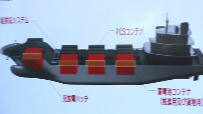 「エネルギーを輸送する船は石炭もガスも石油もあり、日本のエネルギーはそれら船によってもっている。輸入が95%ですから、それに対して電気運搬船は世界で初めて電気を運ぶ船です。電池が大量に船のなかにあるので船全部を充電して、充電された状態で航行し、電気を運んだ先に放電していく」