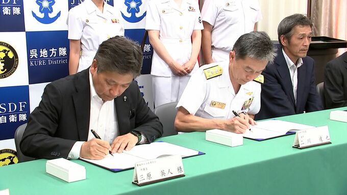 呉地方総監部で行われた締結式には、二川達也呉地方総監と四国4県の石油商業組合の代表と関係者16人が出席しました。この協定は、災害発生時、支援に向かう艦船などに対して民間の石油会社から燃料を供給したり運搬したりするものです。こうした協定は4月に広島県も締結していて、あわせて5県になりました。