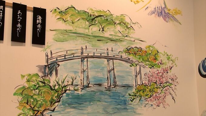 このほか壁の絵には、絵師による手書きで栗林公園が描かれ、香川の店舗らしさを演出しています。