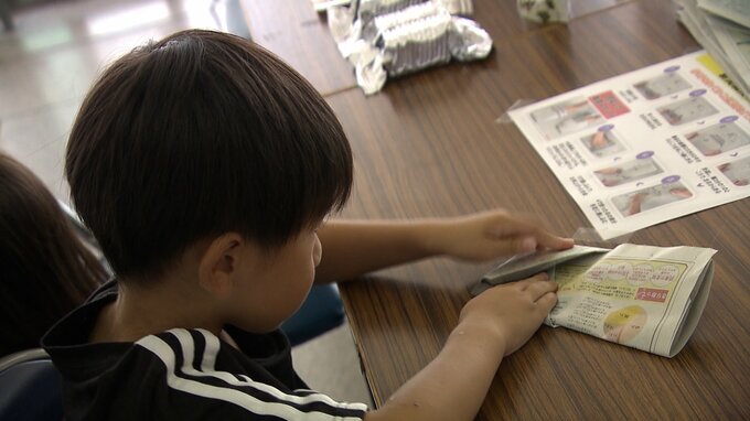 また、体験コーナーとして新聞紙を使ったスリッパ作りも行われました。