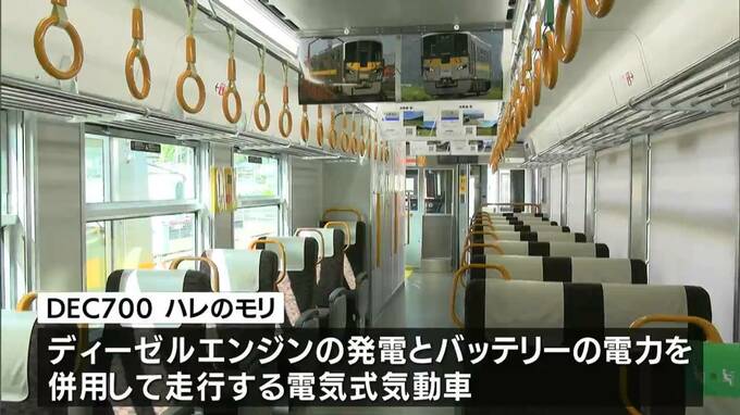 「ディーゼルエンジンによる発電」と「バッテリーの電力」を併用して走行する電気式気動車で、消費する燃料を押さえることができるといいます。運行は「森の芸術祭」期間中の土日と祝日で、津山駅と新見駅を一日一往復する予定です。
