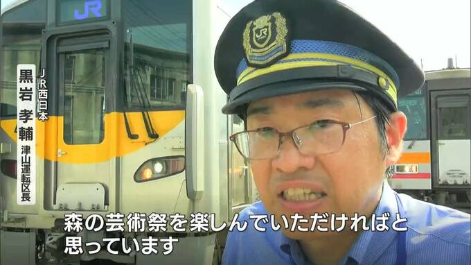 秋に開催される「森の芸術祭」期間中に臨時快速として運行される、JR西日本の新型車両・ハレのモリが、岡山県津山市の「まなびの鉄道館」で御披露目されました。