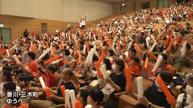 渡邊雄太選手の出身地・三木町では、およそ450人がパブリックビューイングで試合を見守りました。ドイツ戦には渡邊選手や八村塁選手が出場、立ち上がりからドイツに差をつけられますが、渡邊選手らが次々3ポイントシュートを決め食い下がります。しかし決定力の高いドイツにじわじわと引き離され20点差で初戦を落としました。