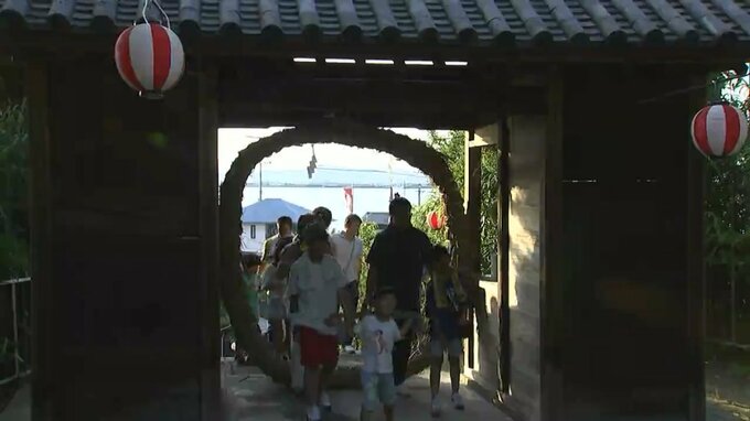 岡山市南区の神社で、きのう(27日)、伝統行事にあわせて夜市が開かれました。