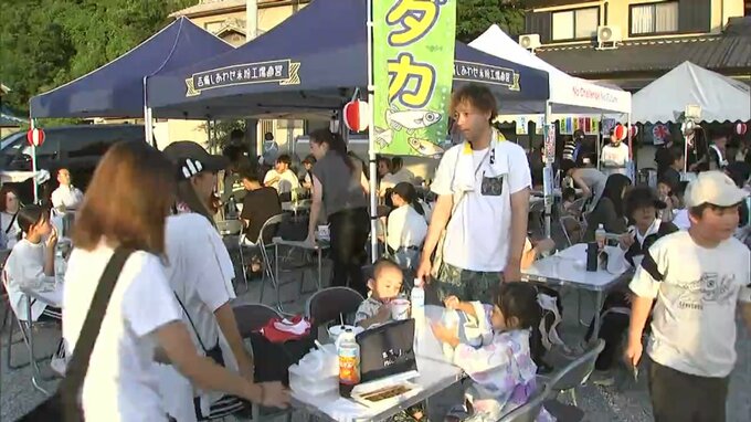 地域創生カモメプロジェクトが地域を盛り上げたいと企画したもので、訪れた人は夜店が並んだ夏の夜の風情を楽しんでいました。