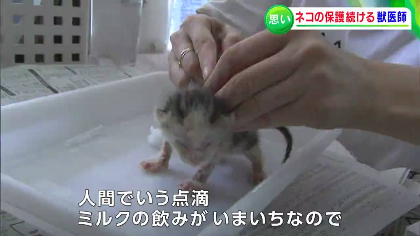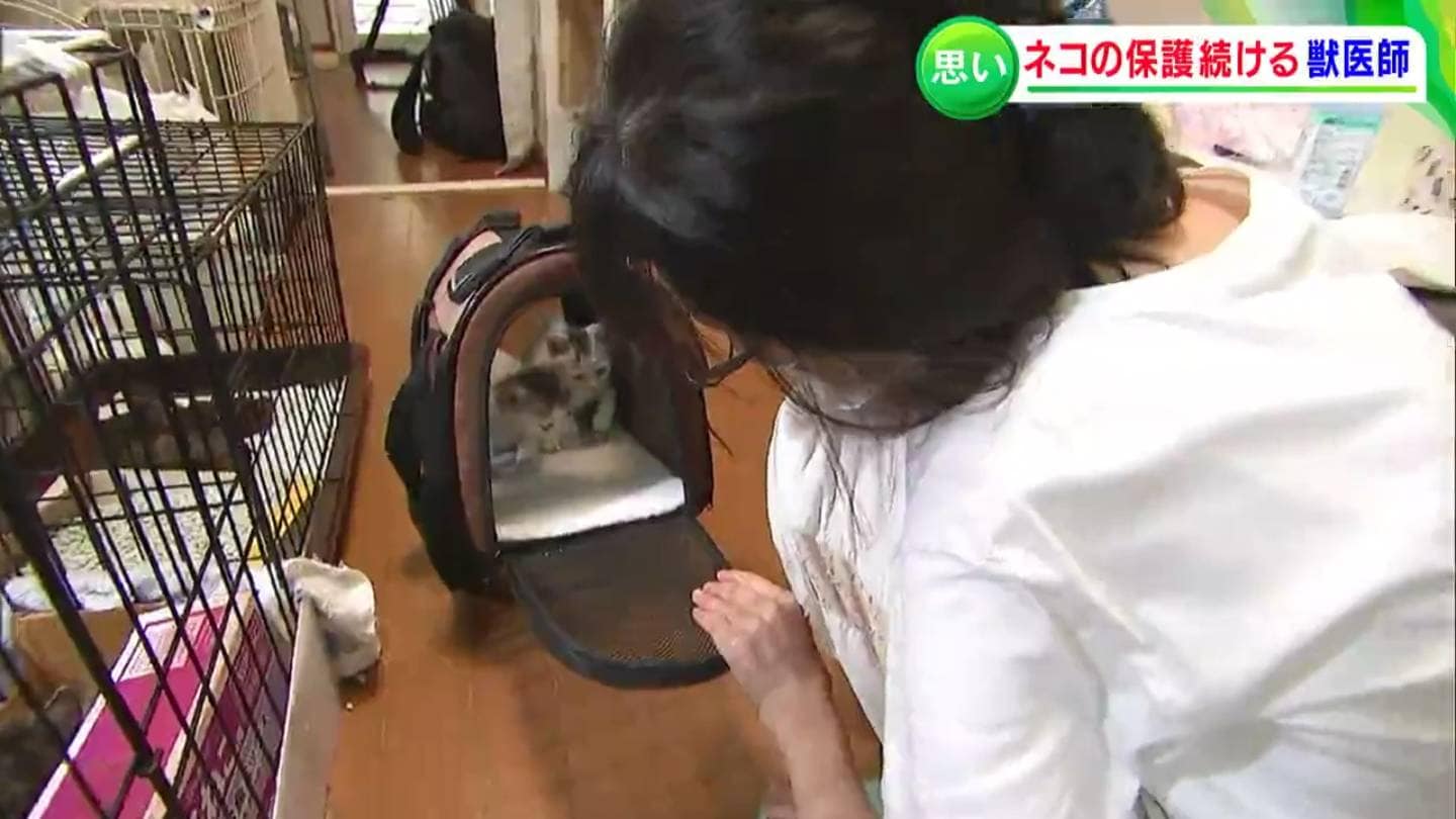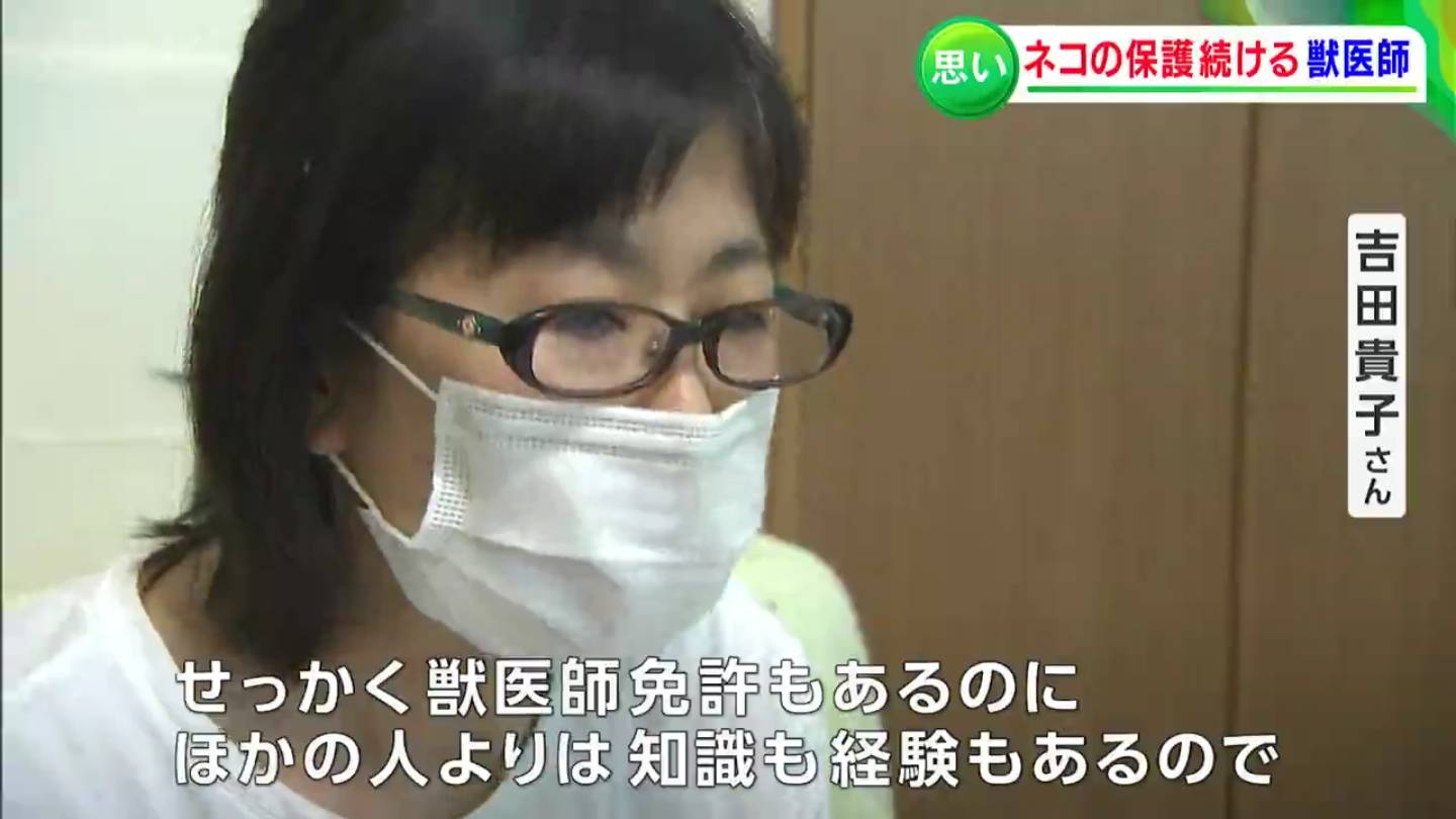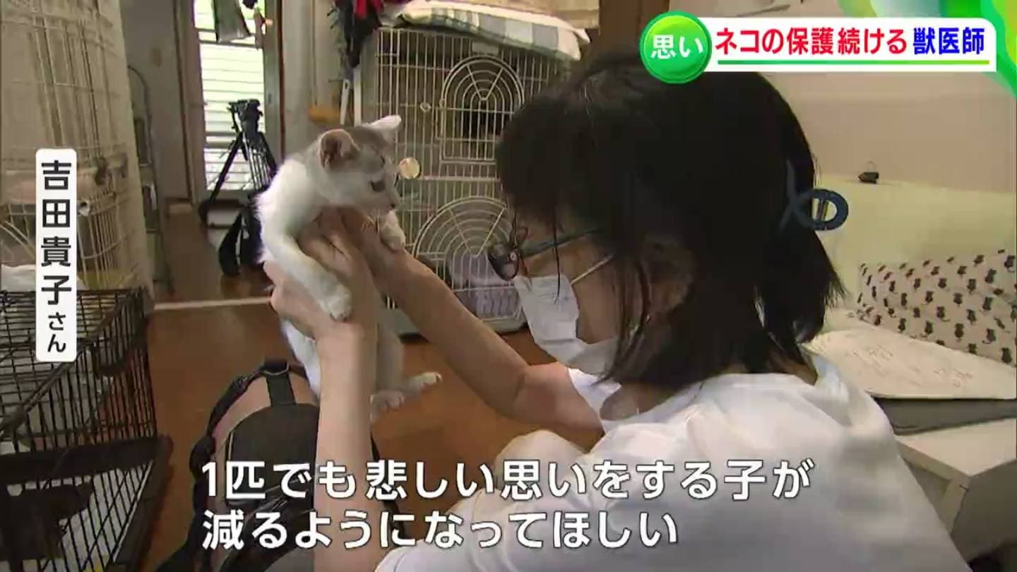 岡山市中区に住む、獣医師の吉田貴子さんです。岡山県の動物愛護センターなどから「放っておくと殺処分されてしまう猫」を預かり、新たな飼い主を探すボランティアを個人で行っています。