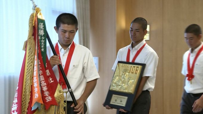 「激戦を勝ち抜いた勢いで甲子園でも勝利を積み上げてほしい」と激励された選手らは、全国大会に向けての思いを新たにしていました。