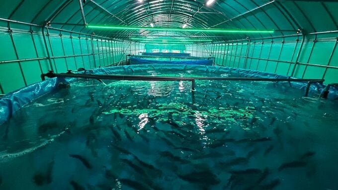 サーモンの陸上養殖は、地下水を利用した「かけ流し式」の養殖システムを開発する熊本県の会社の協力を得て行うものです。