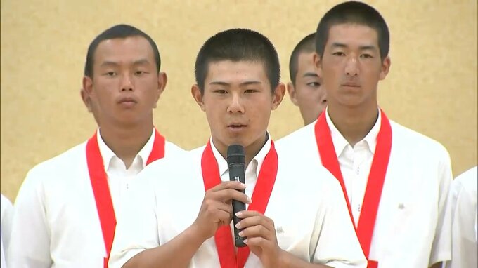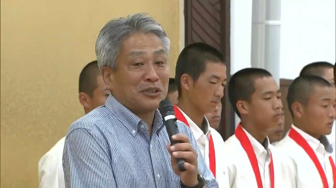 壮行式では森健太郎理事長が、「もう一度アルプススタンドを緑に染めて応援し、みなさんの活躍を期待しています」と選手たちを激励しました。