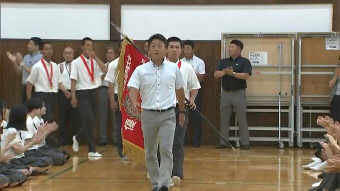 5年ぶりに夏の甲子園出場を決めた岡山学芸館。選手たちの入場を生徒や教職員など約400人が拍手で出迎えました。