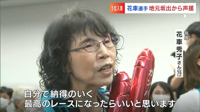 スイミングスクールの後輩と一緒に、祖母・秀子さんたちも懸命の応援です。