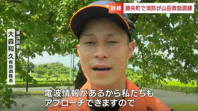 勝央町で行われたのは津山圏域消防組合東消防署の職員による山岳救助訓練です。「足を負傷し動けなくなった人からSOSが寄せられた」との設定で遭難者役が携帯電話の位置情報をもとに職員とやりとりを行いました。およそ2時間かけてヘリで搬送できる地点まで遭難者をタンカで運び救助活動の手順について確認しました。