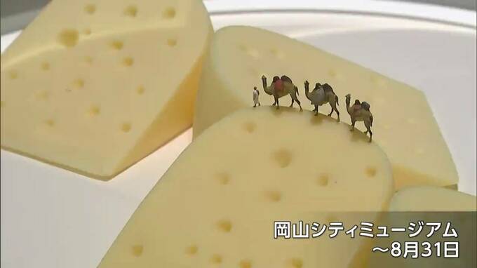 岡山シティミュージアムで開かれている「田中達也見立ての世界 ミニチュアライフ展2」です。日用品やジオラマ人形を独自の世界で表現しています。