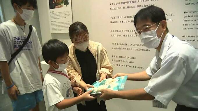 きょう、入場者が4万人を超え、岡山市の親子連れにトートバッグなどの記念品が手渡されました。