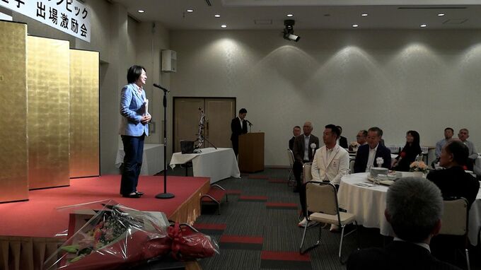 きのう(10日)、倉敷市内のホテルで開かれた激励会には、地元の「応援する会」のメンバーら100人あまりが出席しました。