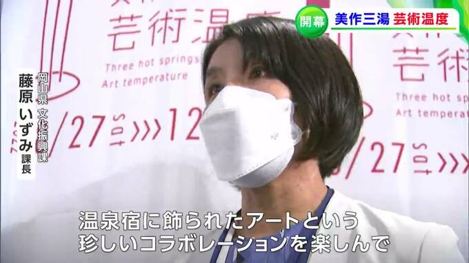 「岡山県の宝である美作三湯を訪れていただきまして、『温泉宿に飾られたアート』という珍しいコラボレーションを楽しんでいただいて、新たに岡山県を楽しんでいただきたい」