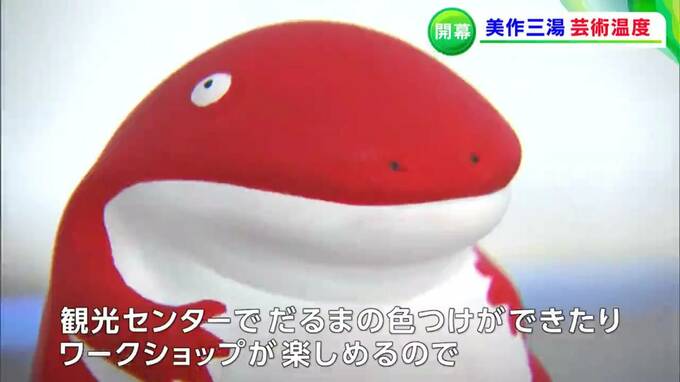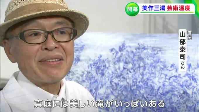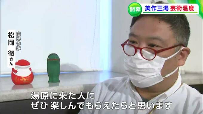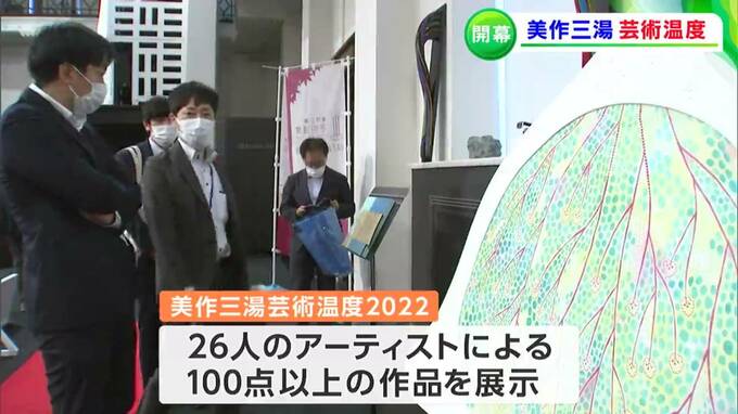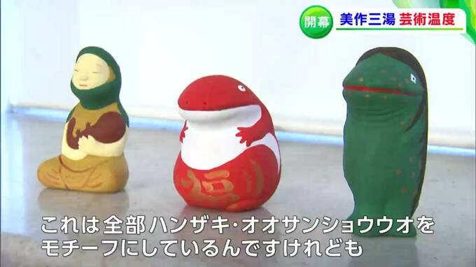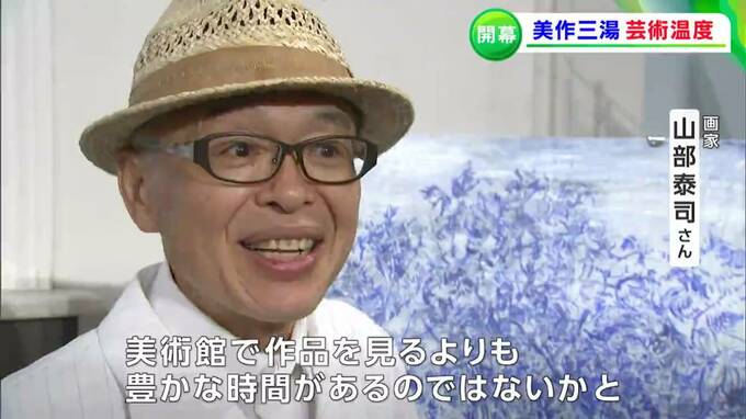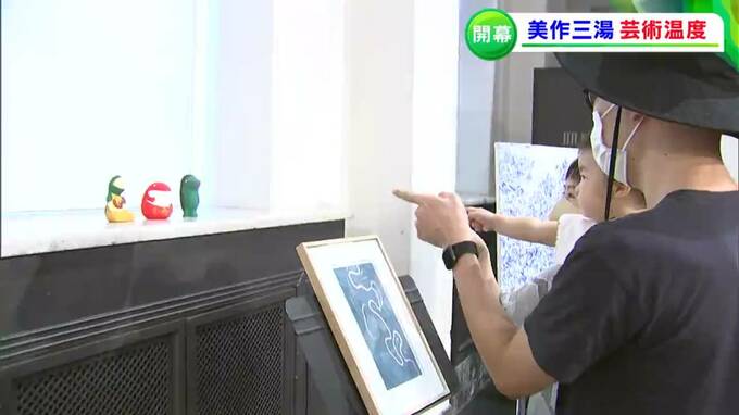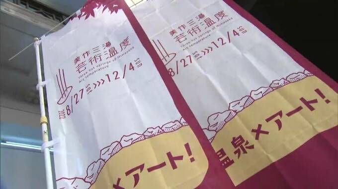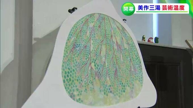 温泉地の雰囲気をイメージした絵画や彫刻などが集まるこのイベントは、今回で3回目。26人のアーティストによる100点以上の作品をホテルや旅館などに展示し、「温泉」と「アート」の力で地域を盛り上げます。