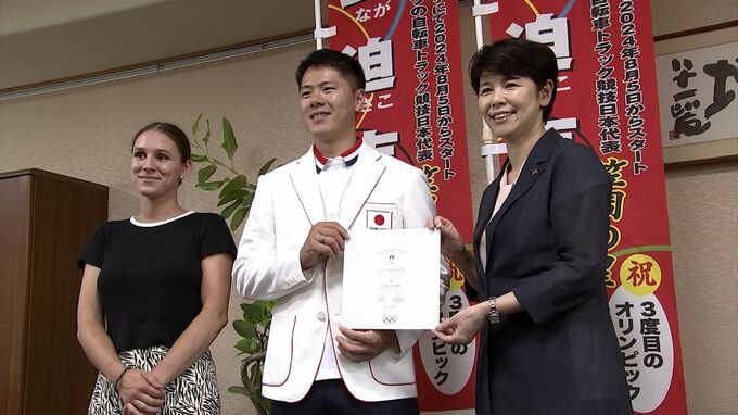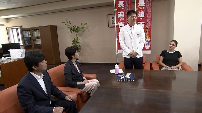 岡山県笠岡市出身で、パリオリンピック™の自転車競技に出場した長迫吉拓選手が笠岡市役所を訪れ、5位入賞の報告と、次のロサンゼルス五輪をめざす決意を述べました。